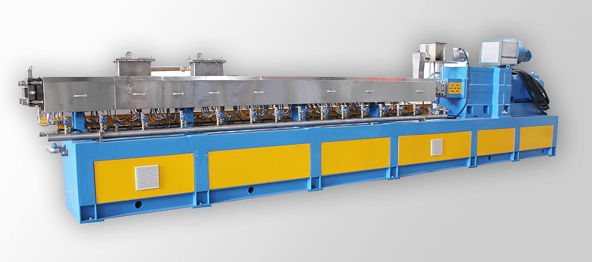 TPE,TPE這種改性塑料材料我們又把他叫作熱塑性彈性體材料。彈性體塑料擠出機和普通的塑料擠出機所用到的螺桿設(shè)計是不一樣的,因為我們常見的TPE材質(zhì)塑化性能要比普通PVC塑料材質(zhì)要差一些。所以我們常見的熱塑性彈性體擠出機從外觀看要比普通塑料擠出機要長一些。這是因為我們要加長塑料的塑化時間來保證產(chǎn)品的生產(chǎn)質(zhì)量。所以我們看到的熱塑性彈性體擠出機的長度要長一些。TPE塑料產(chǎn)品在生產(chǎn)的時候和其它塑料的生產(chǎn)工藝一樣,都是要先把原材料生產(chǎn)成我們所需要的顆粒后才可以再把顆粒加工成我們所需要的產(chǎn)品形狀。比如說彈性體密封條的生產(chǎn),熱塑性彈性體管的生產(chǎn)生產(chǎn)工藝都是這樣的。我們在選擇設(shè)備生產(chǎn)的時候一定要確定產(chǎn)品的材